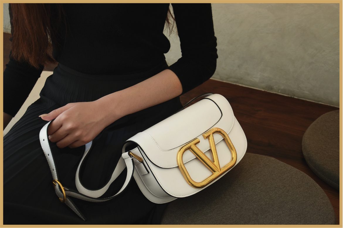 The Valentino SuperVee distinguishes itself by a statement maxi antique brass VLogo, an archival house emblem from the 70’s. Available in three sizes – mini, small, and medium – and a spectrum of neon colours as well as black and white Vitello leather. Look forward to good capacity with the gusseted compartment construction, in good style. It also features a flat pocket, magnetic closure and adjustable shoulder strap. The Valentino SuperVee retails from SGD3,180 for the mini, the medium (as featured) retails at SGD3,680.