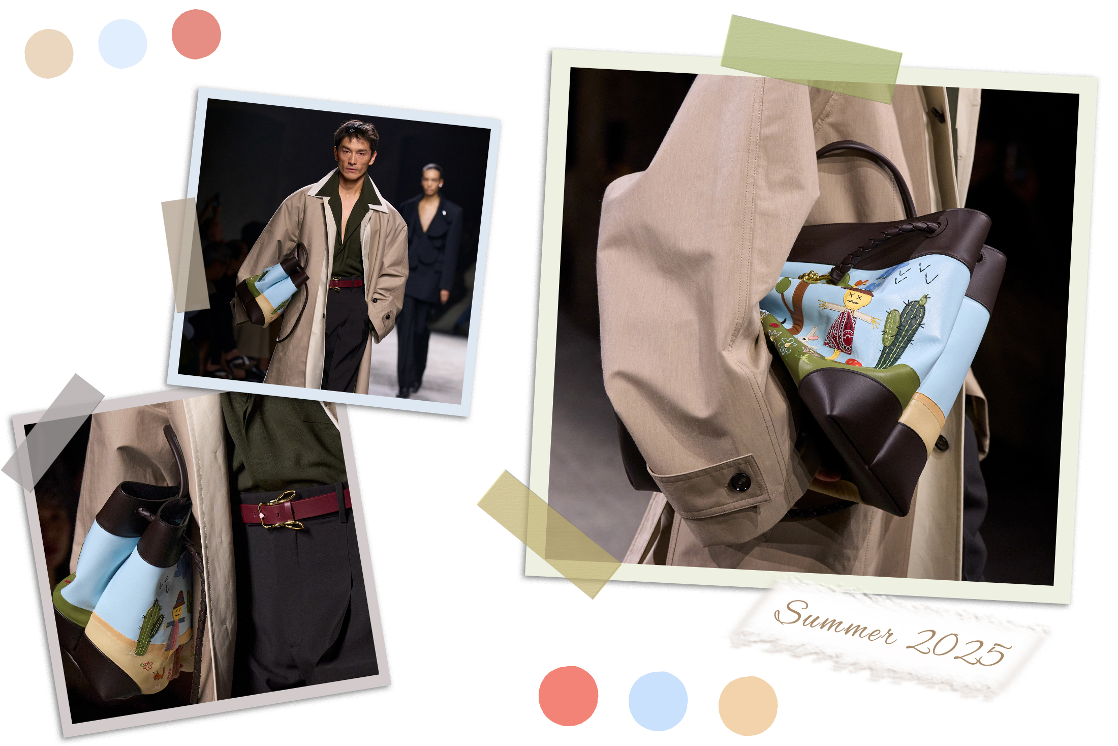 In Pre-Spring and Summer 2025, for example, we saw the Andiamo Voyager play with proportions, contrast and symmetry. The large Andiamo Voyage, for one, was reimagined in a striking half-and-half design where two colours of canvas are vertically sewn together in the centre to form the bag body while two colours of Bristol leather are joined together at the same point at the trims and handles.