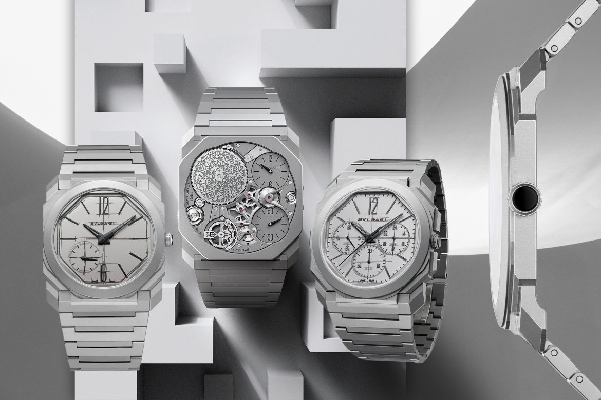 These feather-light monochrome anniversary models pay tribute to two emblematic timepieces in the Octo Finissimo saga, reproducing Fabrizio Buonamassa Stigliani’s early sketches.