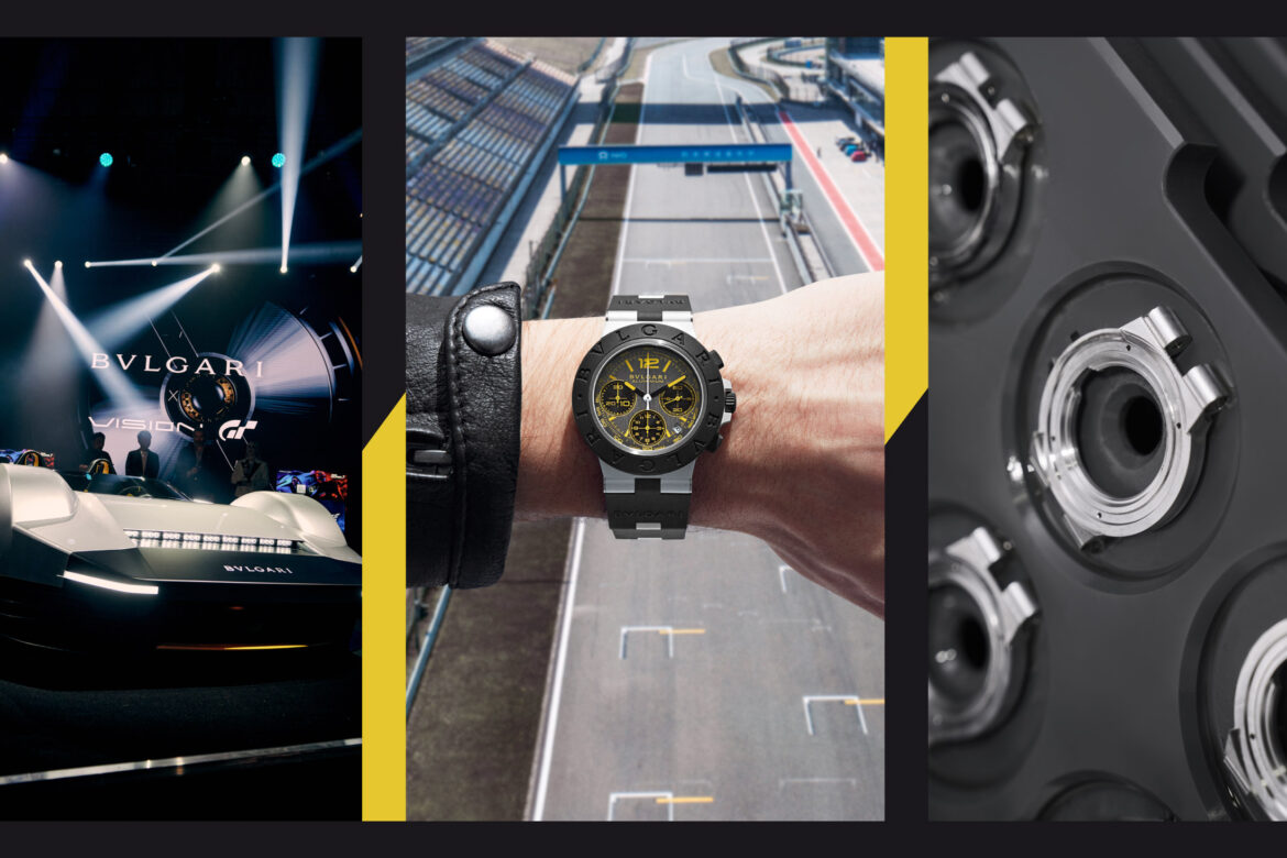 A nitro-injected chronograph has just joined the Bulgari Aluminium collection at the Gran Turismo World Series Finals in Barcelona. The new timepiece, the Bulgari Aluminium X Gran Turismo Special Edition 2023, is the result of a collaboration with Gran Turismo, the renowned racing simulation franchise that’s sold over 90 million units of its video games since its 1997 debut. Alongside this watch’s release, Bulgari has also unveiled the Bulgari Aluminium Vision GT car under the Vision Gran Turismo programme.