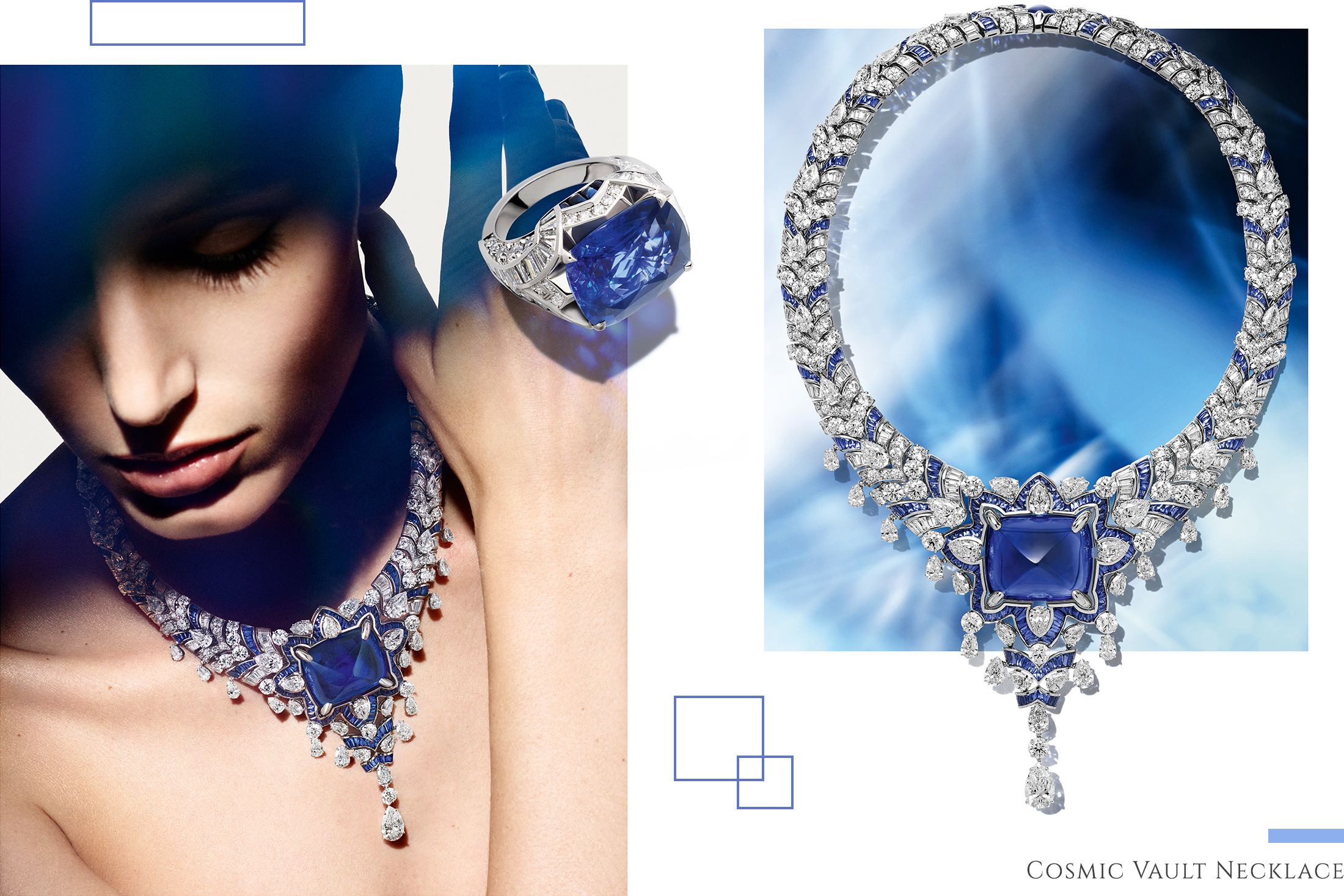 Highlights include the Cosmic Vault necklace, inspired by Rome’s architecture and featuring a 123.35-carat Sri Lankan sugarloaf sapphire, and the Celestial Mosaic, centred on a 131.21-carat Tajik spinel—among the largest and finest in the world.