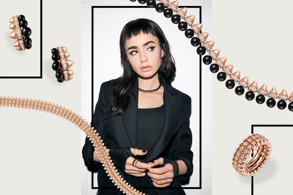 Taking the play with volume further are the new XL ring, bracelet, necklace and earrings that showcase rose gold picot studs mirrored by perfectly round onyx beads across a line of diamond paving. The signature conical shape of the picot stud made its debut in the early 20th century – a picot-studded headpiece stirred the general public at the 1925 International Exhibition of Modern Decorative and Industrial Arts. The picot remained a signature of the Maison and was seen articulated in many exquisite Cartier creations under the creative directorship of the legendary Jeanne Toussaint, from 1933 to the 1970s. And today, the iconic shape takes visual extravagance to the next level with the Clash de Cartier collection.
