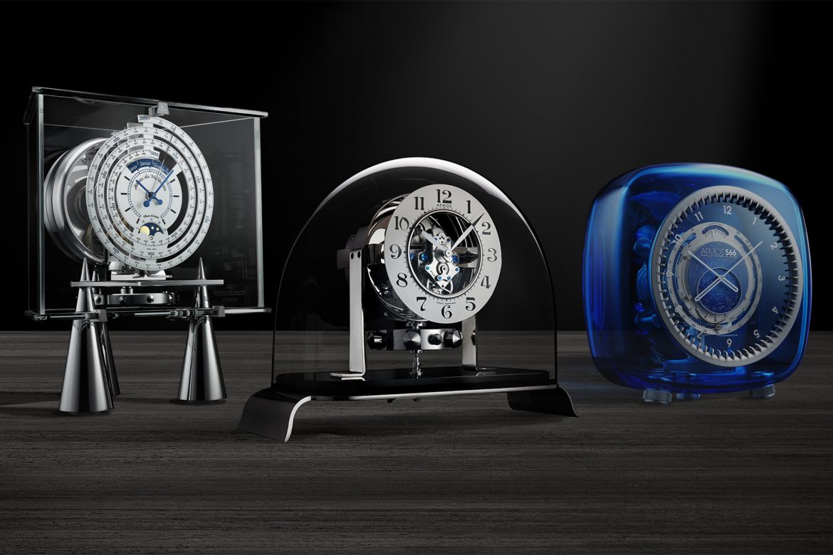 Among some outstanding examples are the futuristic Atmos du Millénaire Atlantis, created in 1999 to celebrate the new millennium; the Atmos 566 by Marc Newson, encased in a cube of hand-made Baccarat crystal, within which the mechanism appears to float weightlessly; and the sumptuous Atmos Marqueterie “Le Baiser” of 2012, enclosed in a cabinet of rare woods with an exquisitely detailed wood marquetry rendition of Gustav Klimt’s painting “The Kiss”.