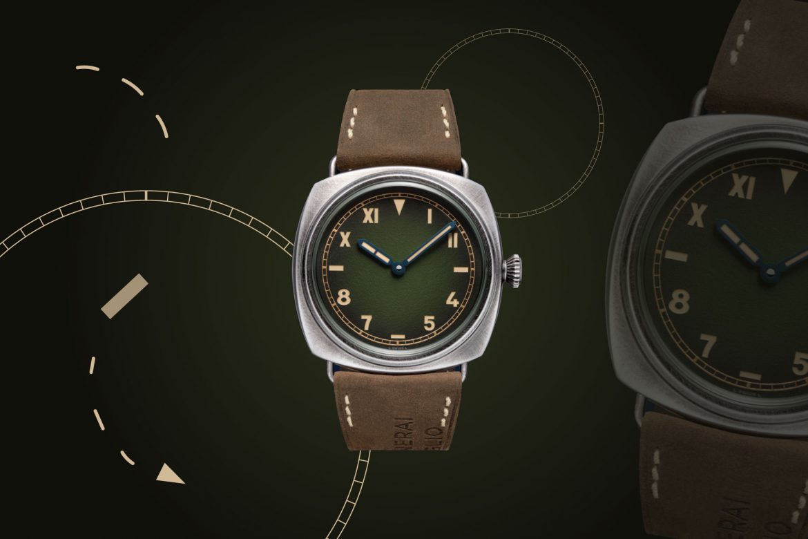 The textured dial in a charming shade of deep green is enclosed by a cushion-shaped, hand-finished steel case purposefully made to take on an antiquated look. Made from Brunito eSteel™- a brand-new finishing and first-ever in the history of Panerai, every case goes through the PVD (Physical Vapor Deposition) process and is then individually hand-polished, giving each piece its own character, which many watch collectors would appreciate.