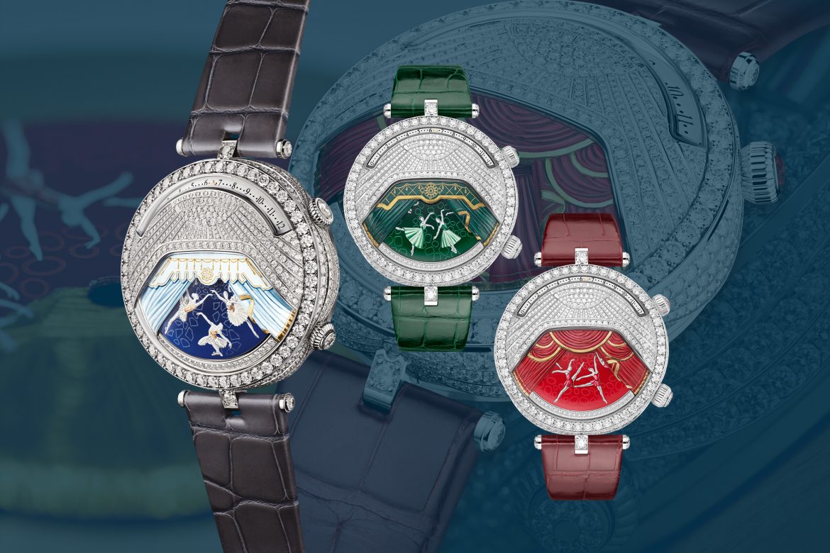 The curtain is raised. Finely sculpted, engraved and hand-painted draperies reveal five ballerinas in miniature painting, dancing to the complex melodies of three classical music themes: Pelléas et Mélisande, Op. 80 by Gabriel Fauré (1898), Capriccio for piano and orchestra by Igor Stravinsky (1929) and Piotr Ilyich Tchaikovsky’s Symphony No. 3 (1875). We are led into the enchanting world of ballet within seconds.